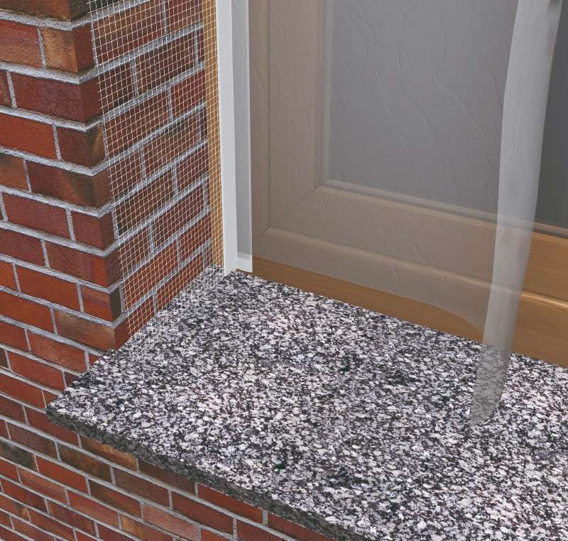 En el refuerzo de huecos de fachada, en los puntos angulares entre jamba y dintel, es necesaria la aplicación de una malla adicional. Estos son los pasos necesarios: