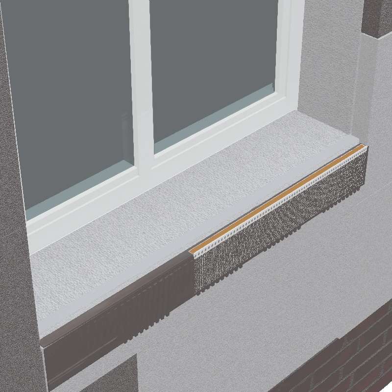 El encuentro del vierteaguas con el SATE Rhonatherm® debe ser totalmente estanco, por lo que la unión debe quedar sellada mediante la instalación del Perfil Alféizar.